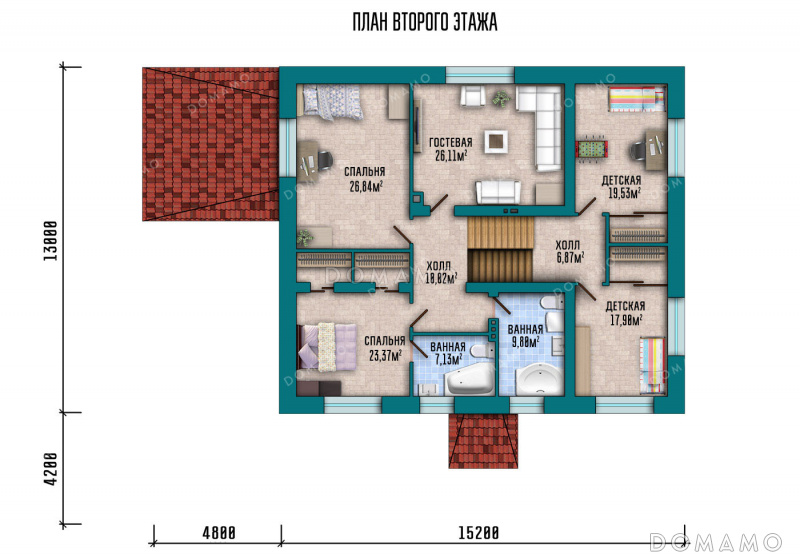 Дом D6079 Проект двухэтажного дома с гаражом, оборудованным подвалом и крытой террасой
