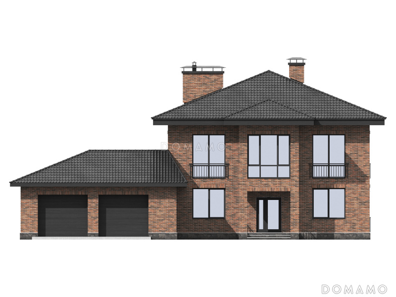 Проект кирпичного двухэтажного особняка с двойным гаражом