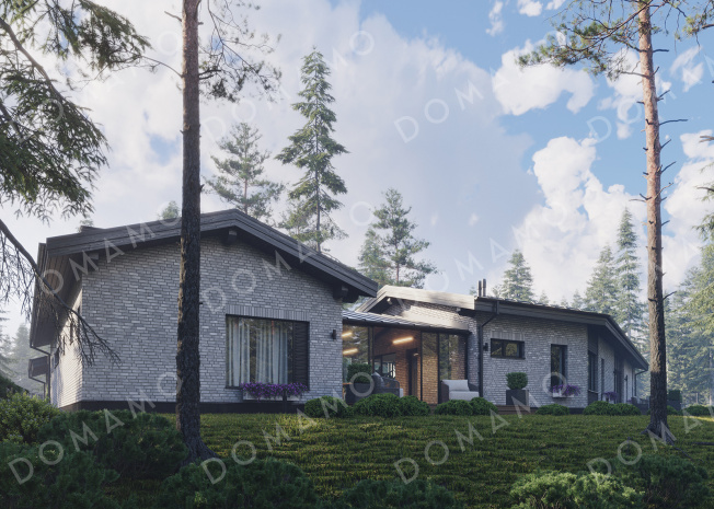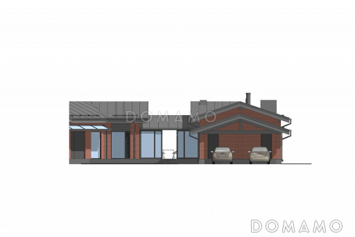 Дом D6152 Проект сблокированного дома с мастер-спальней, зоной отдыха и утепленной террасой