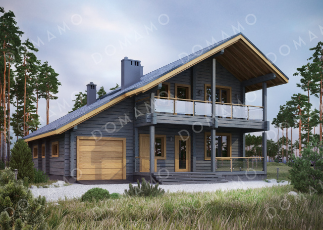 Дом D616 Проект комфортабельного дома из бруса с гаражом и изящной террасой