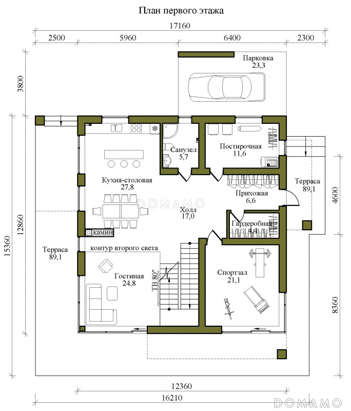 | Высота потолков 2 этажа |