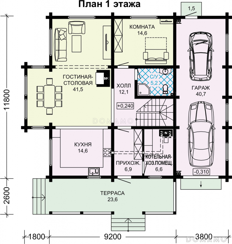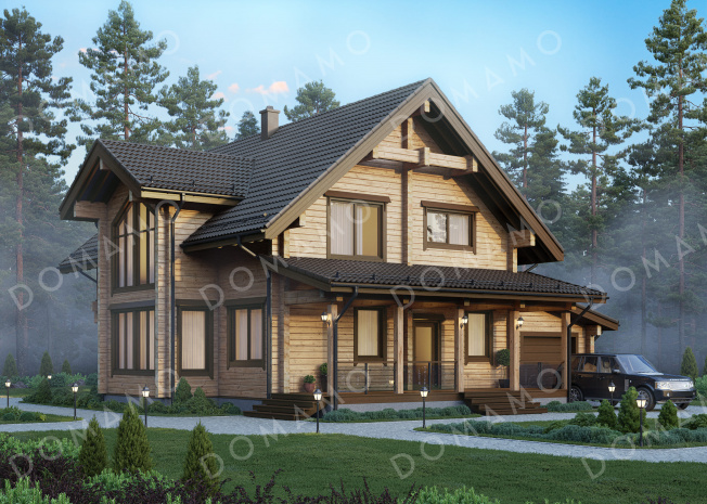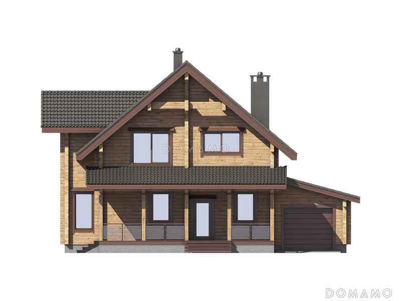 Проект деревянного мансардного дома с гаражом на 2 автомобиля