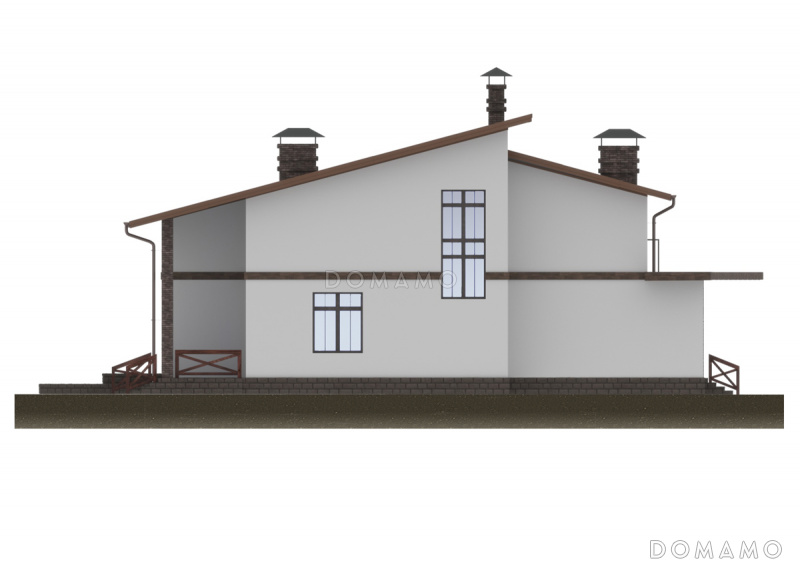 Дом D6248 Проект дома с пятью спальнями, открытой планировкой дневной зоны с закругленным углом
