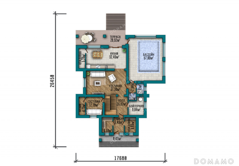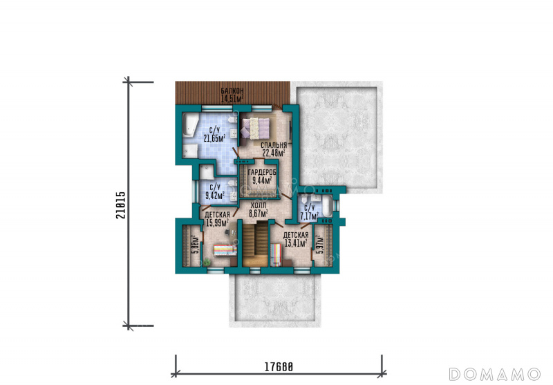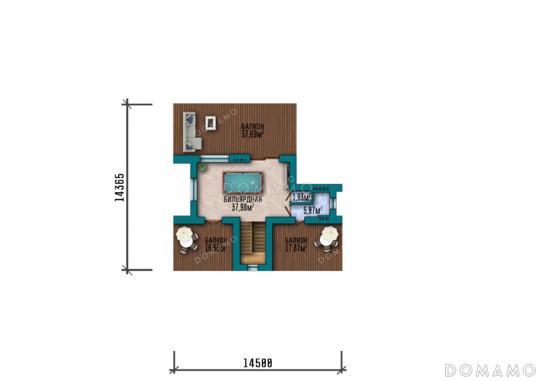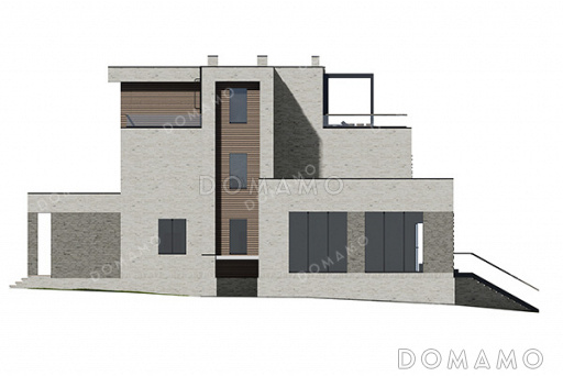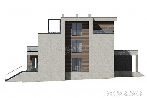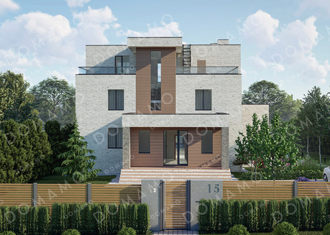 Дом D6255 Проект современного особняка с бассейном, бильярдной и открытыми балконами на третьем этаже