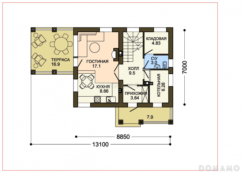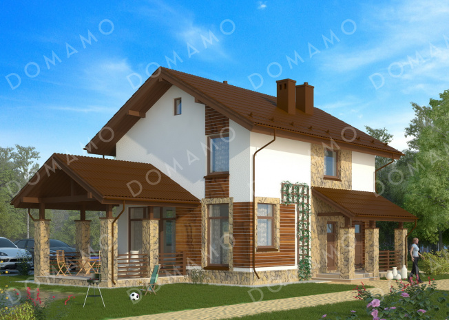 Дом D648 Проект функционального двухэтажного дома с террасой при гостиной