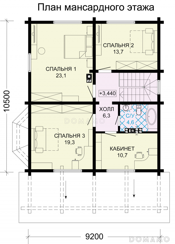 Проект рационально распланированного, уютного дома с тремя просторными спальнями и личным кабинетом