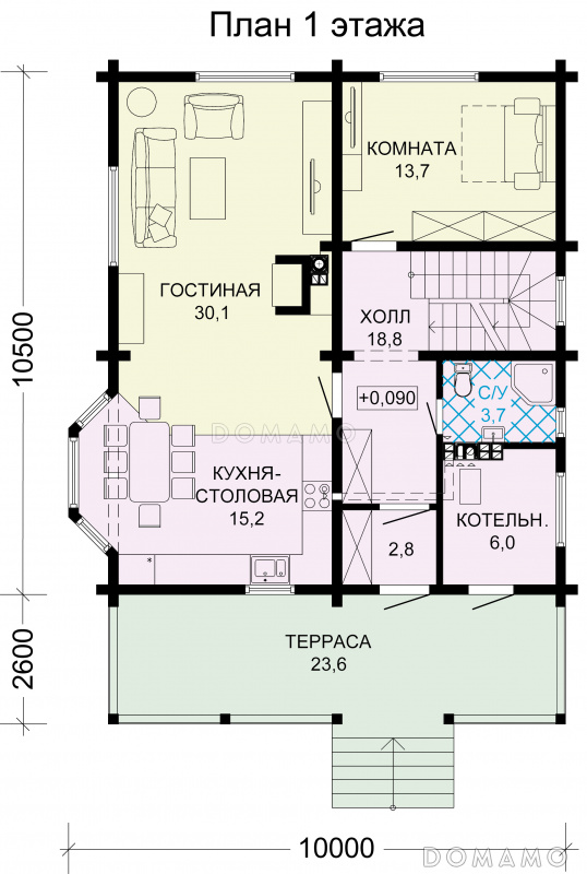 Дом D669 Проект рационально распланированного, уютного дома с тремя просторными спальнями и личным кабинетом