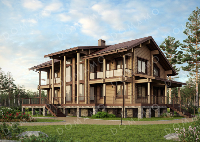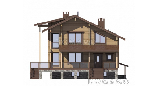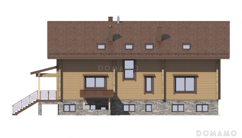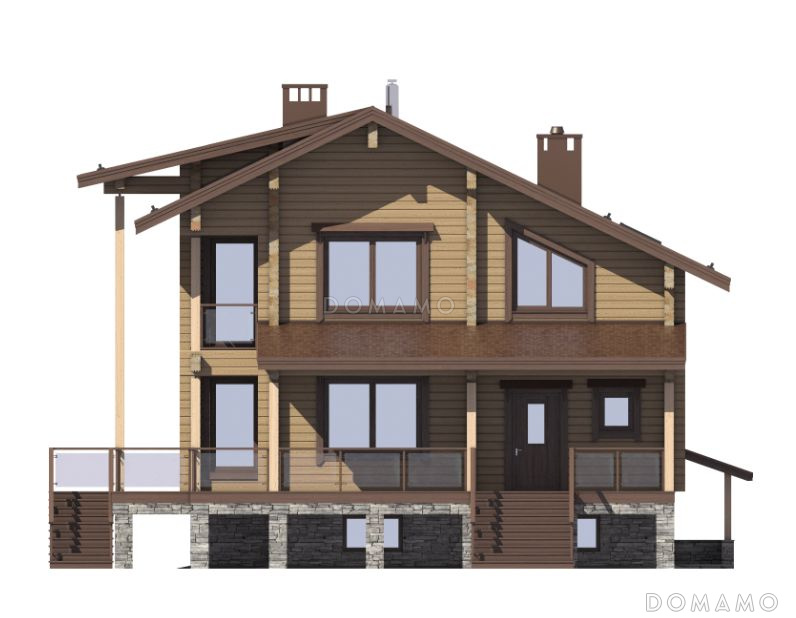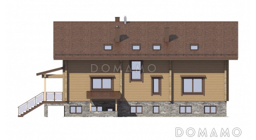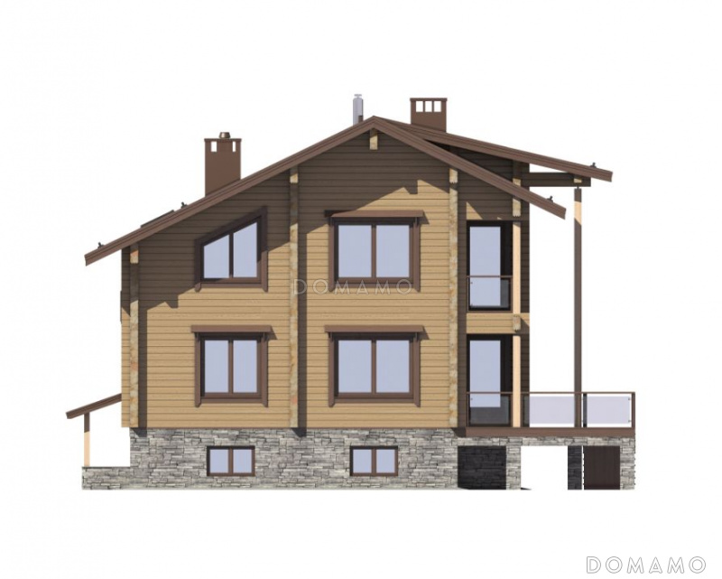 Дом D670 Проект особняка из бруса с цокольным этажем, тренажерным залом и панорамнымии окнами