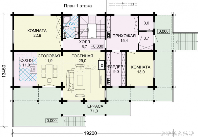 Проект особняка из бруса с цокольным этажем, тренажерным залом и панорамнымии окнами