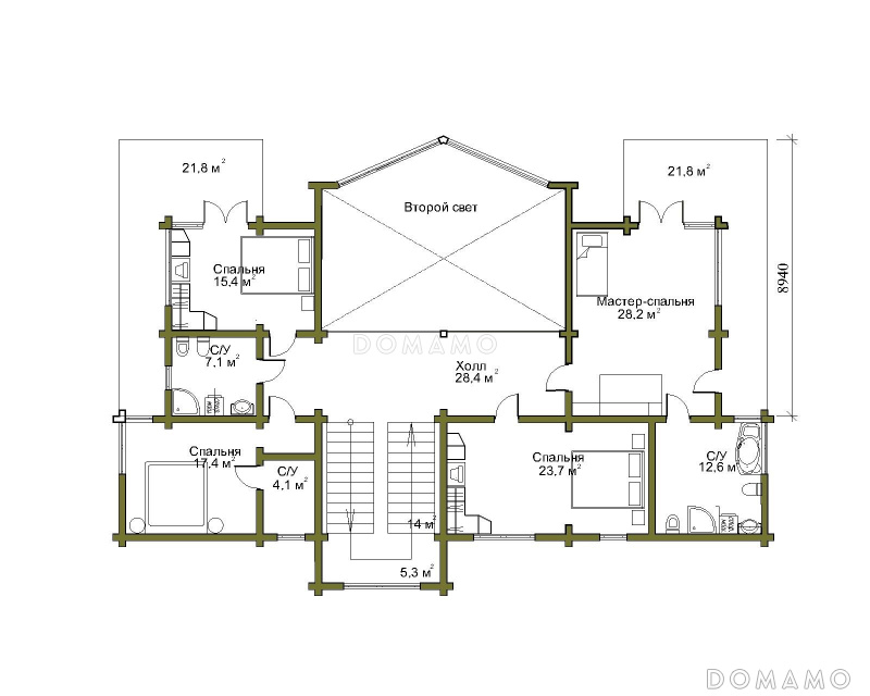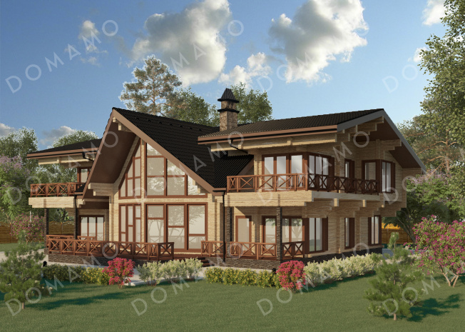 Дом D677 Проект двухэтажного дома из клеенного бруса со вторым светом и двумя балконами