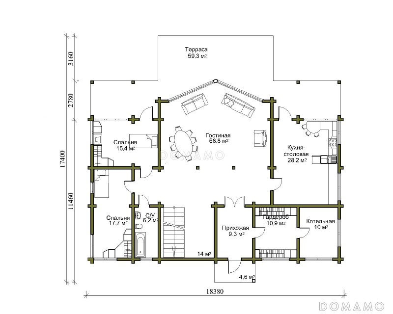 68.8 м²