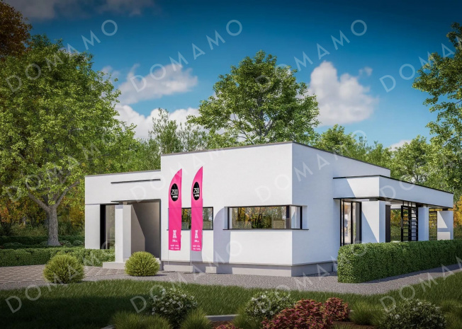 Дом D6858 Проект кирпичного дома с террасой, окнами в пол и большой гостиной