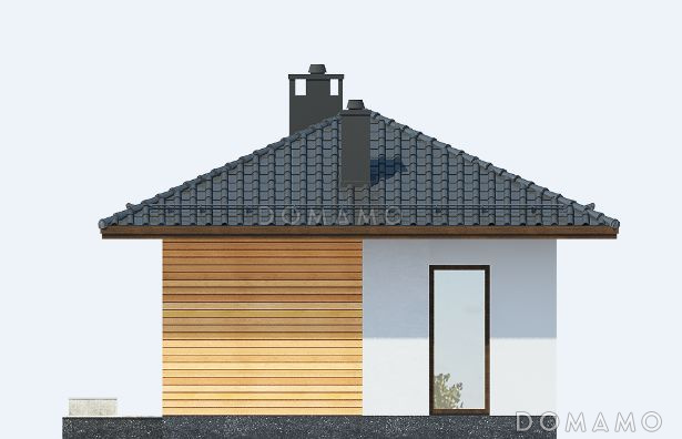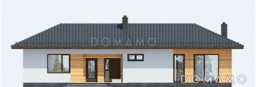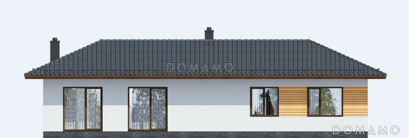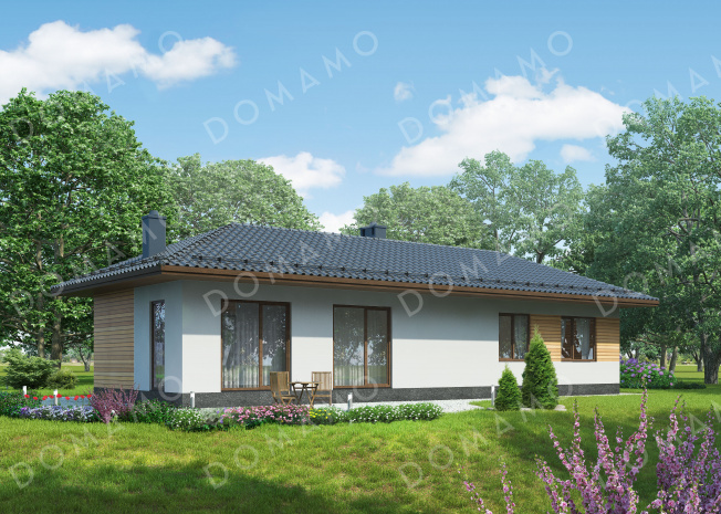 Дом D691 Проект одноэтажного дома по технологии ЛСТК с большими окнами в гостиной