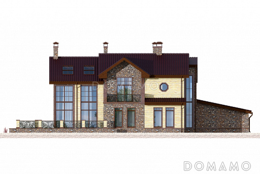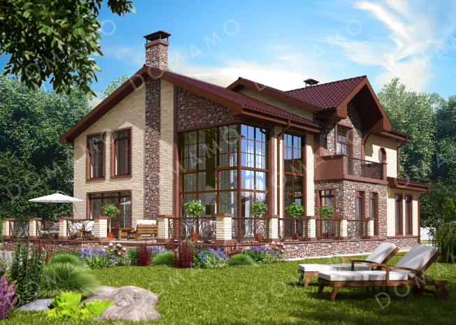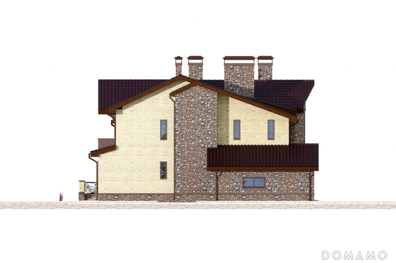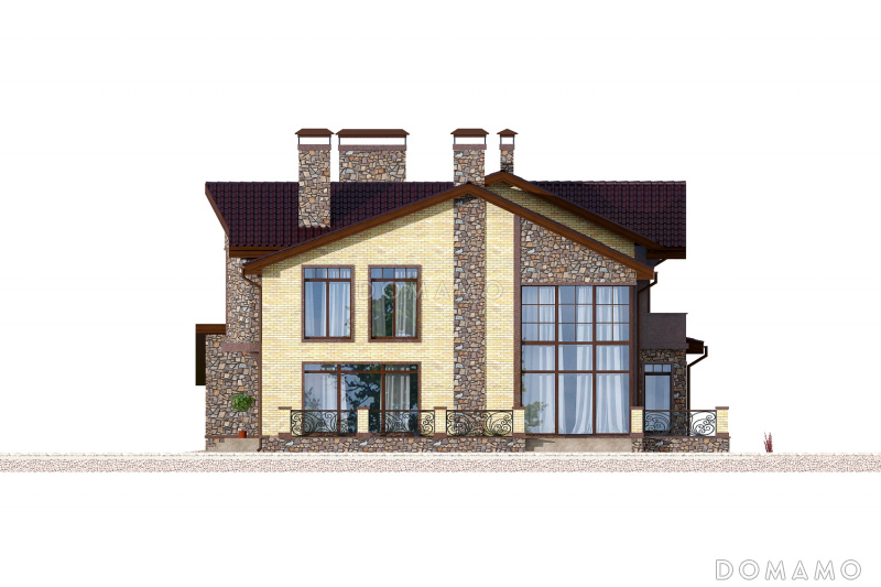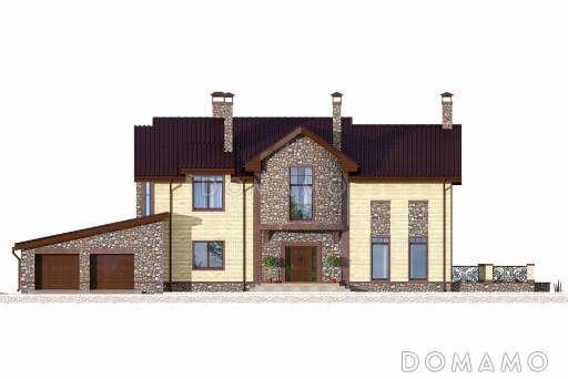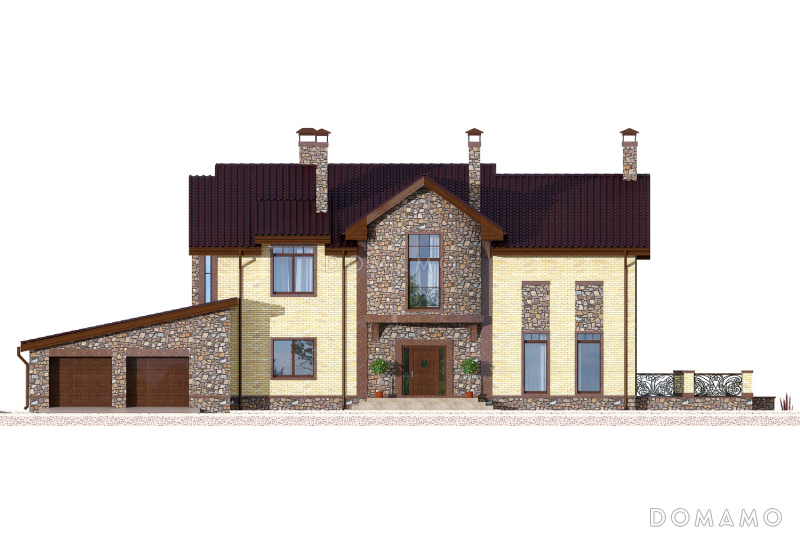 Дом D752 Проект дома из пеноблоков с большой открытой террасой и гаражом на две машины