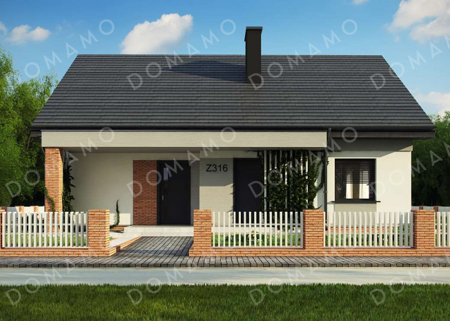 Дом D992 Проект простого уютного одноэтажного дома из кирпича с двумя спальнями и возможностью обустройства мансарды