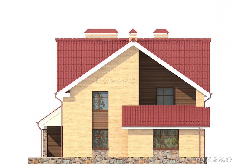 Проект загородного дома с изолированной кухней, крытой террасой, лоджиями, вторым светом