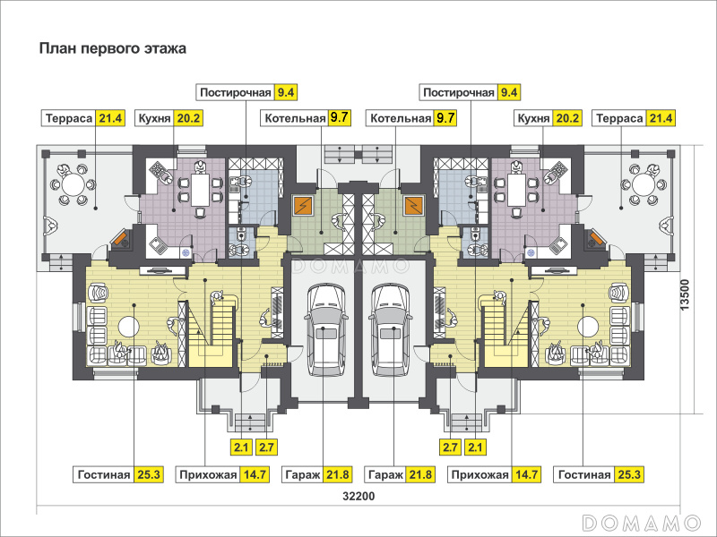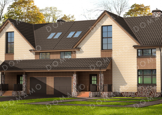 Дуплекс D3015 Загородный дом для большой семьи с функциональной планировкой, гаражом, барбекю на террасе