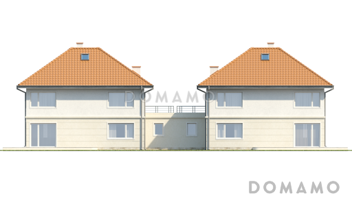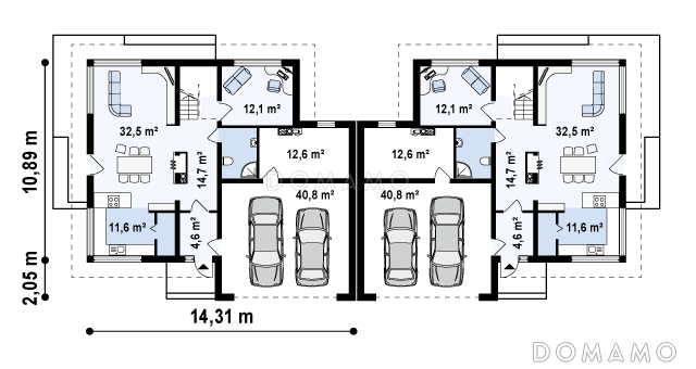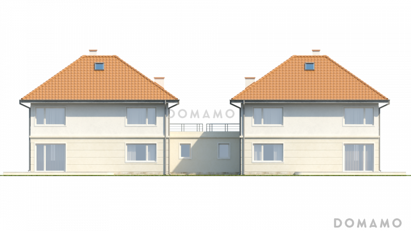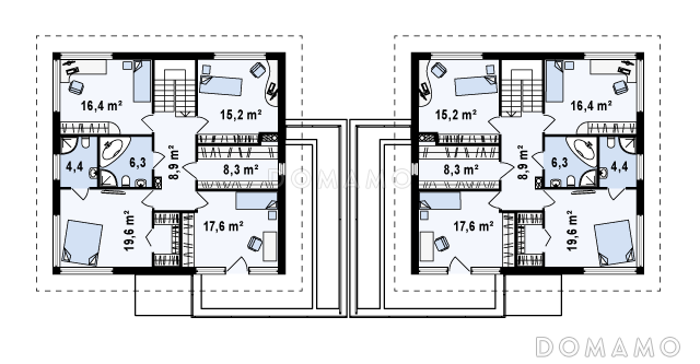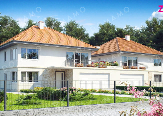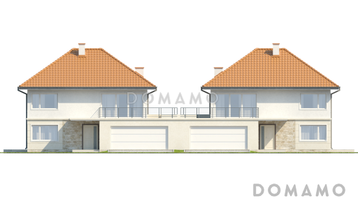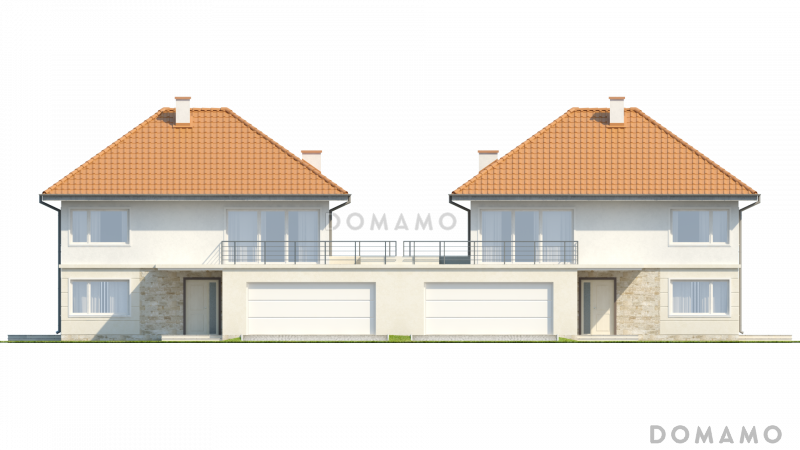 Дом D3317 Проект двухэтажных домов-близнецов из газобетона с открытой террасой над большим гаражом