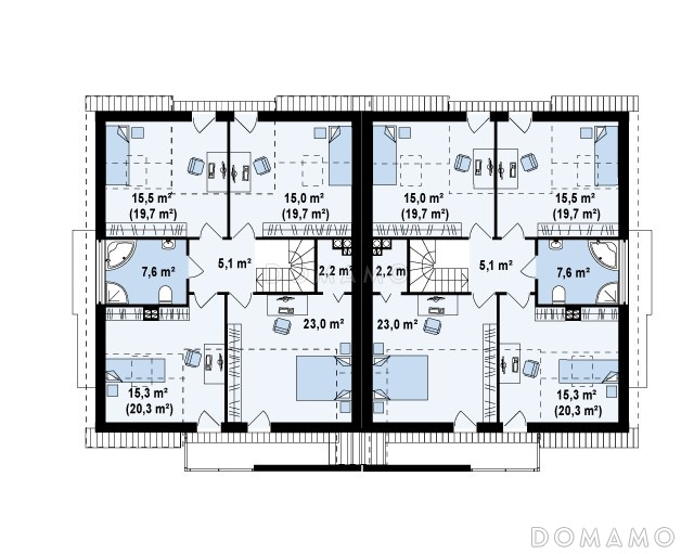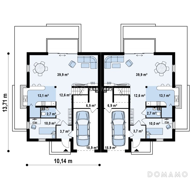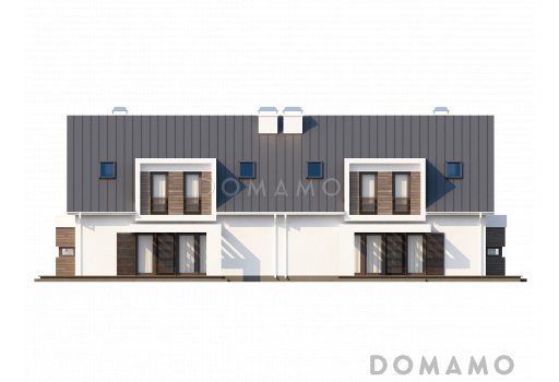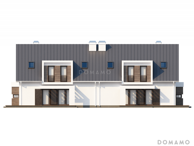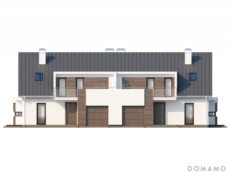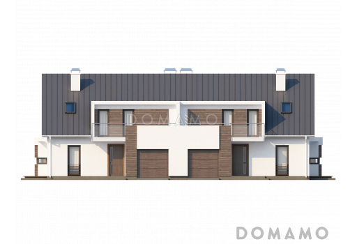 Дом D3827 Проект современных мансардных домов-близнецов из газобетона с гаражом, слуховым окном и балконом