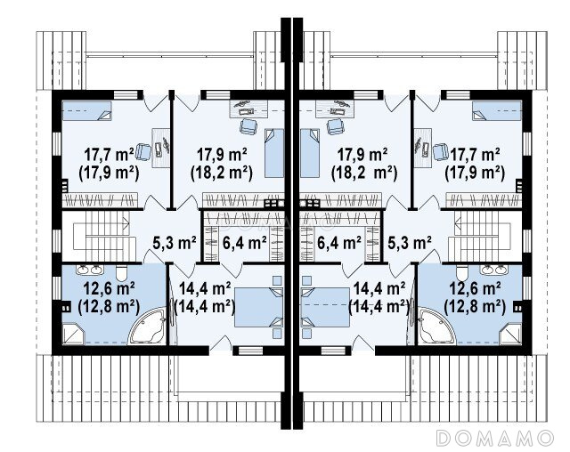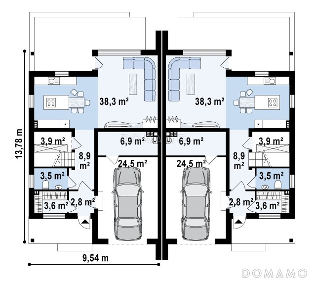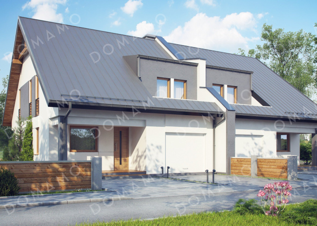 Дом D3900 Проект мансардных домов-близнецов из газобетона с гаражом и слуховым окном