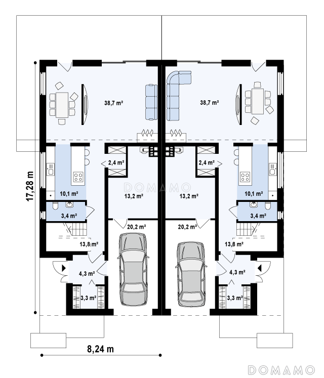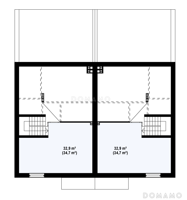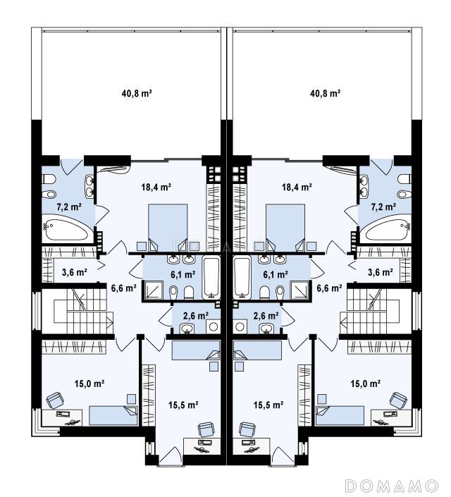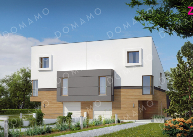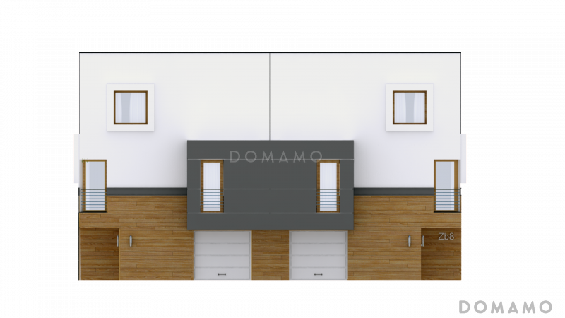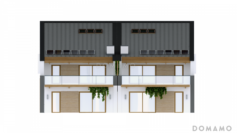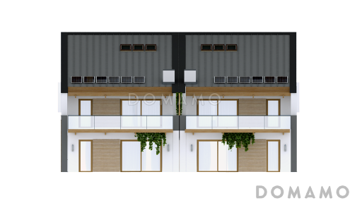 Дом D4355 Проект мансардных домов-близнецов из газобетона современного дизайна с гаражом и террасой на втором этаже