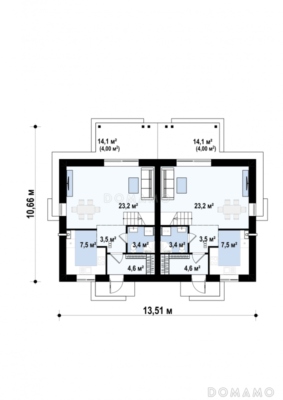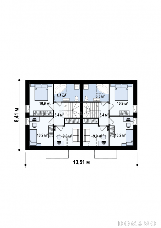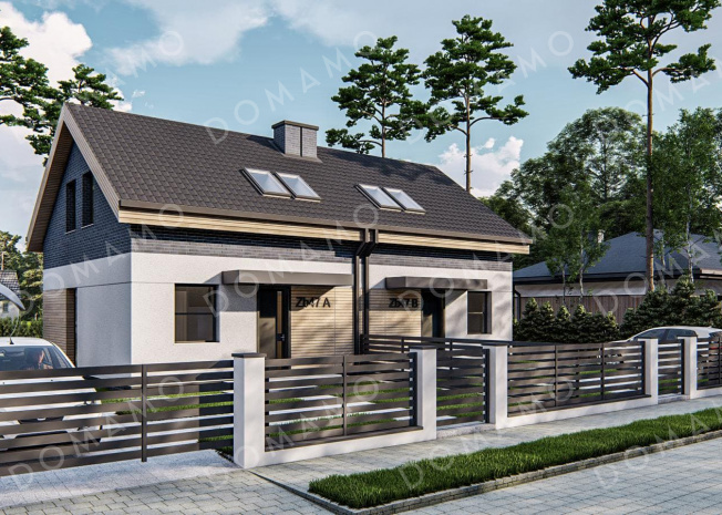 Дом D4928 Проект двухсемейного дома из кирпича с 3 спальнями на мансарде
