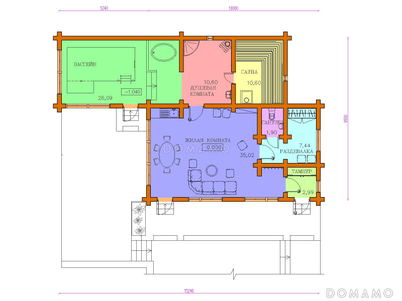 Проект бани с бассейном и жилой комнатой
