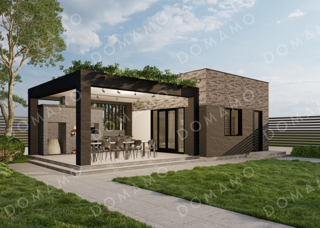 Баня D4528 Проект одноэтажной бани в стиле хай-тек с мангальным комплексом