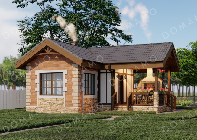Баня D4806 План каркасной бани с барбекю в средневековом английском стиле