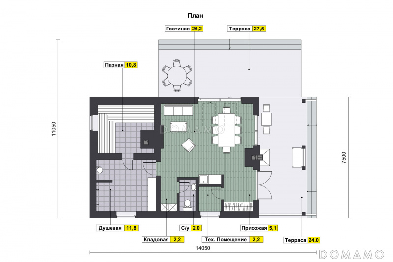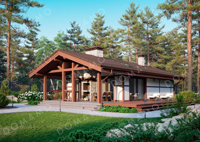 Баня D5320 Проект бани из газобетона с барбекю на террасе