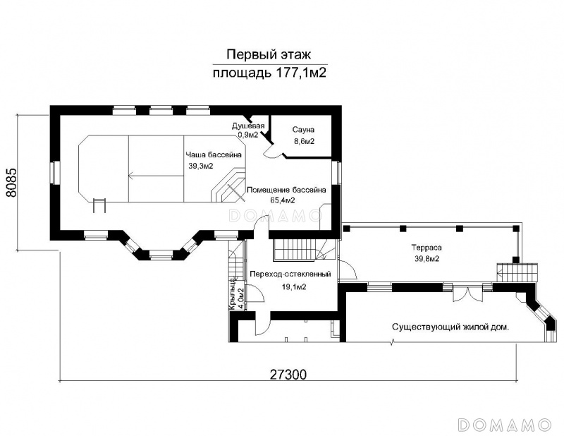 Бассейн d117 Проект пристроенного бассейна с эркером