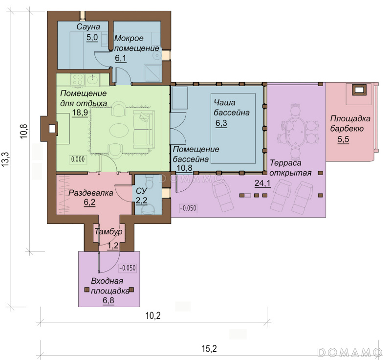 Проект бассейна с зоной отдыха и барбекю