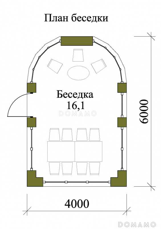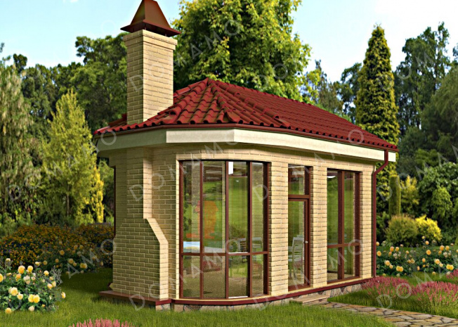 Беседка D2526 Проект остекленной беседки с барбекю внутри