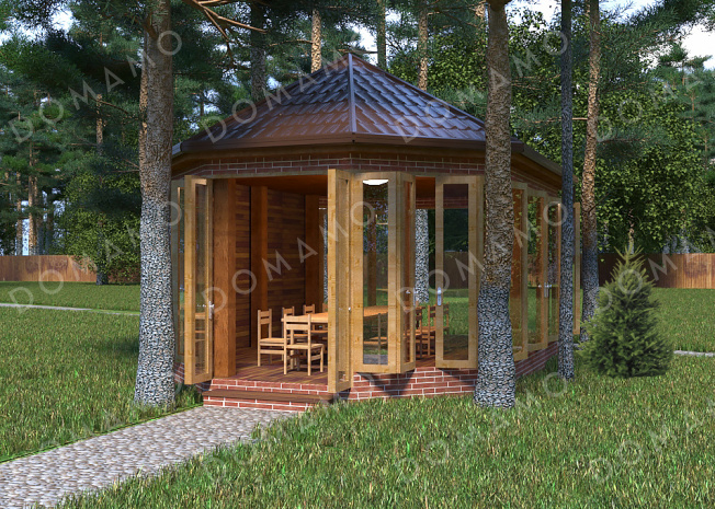 Беседка D5019 Проект небольшой остекленной беседки из кирпича