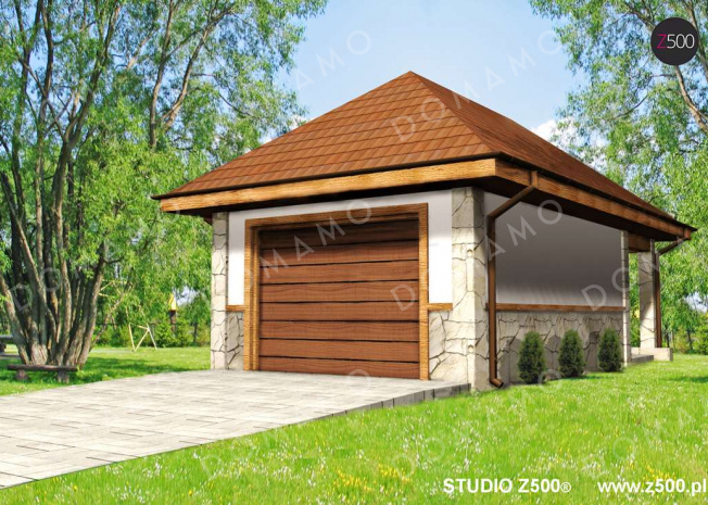 Гараж D3905 Проект одноместного гаража из газобетона с крытой террасой позади
