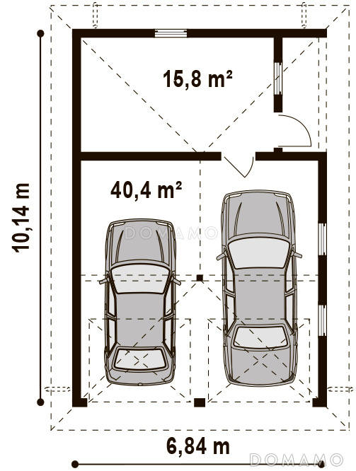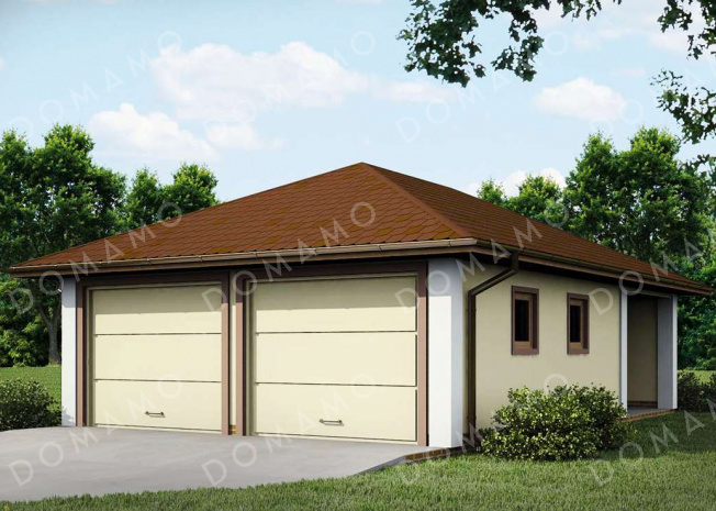 Гараж D3946 Проект гаража из кирпича для двух авто с отдельными воротами и хозяйственным помещением