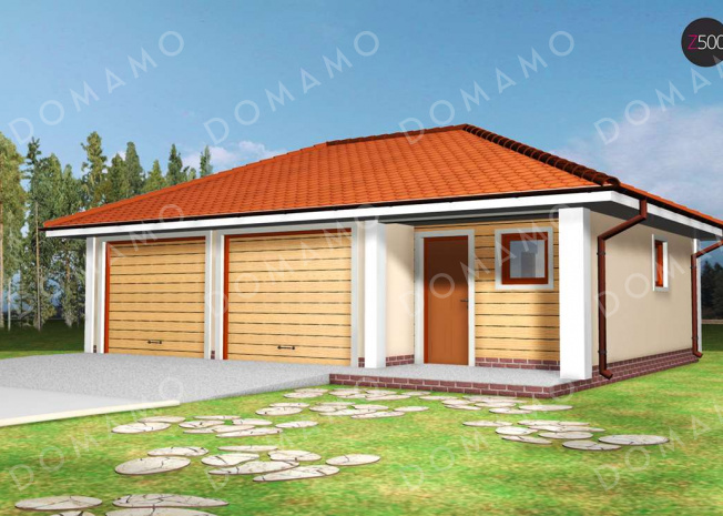 Гараж D4071 Проект гаража из кирпича для двух авто с техническим помещением