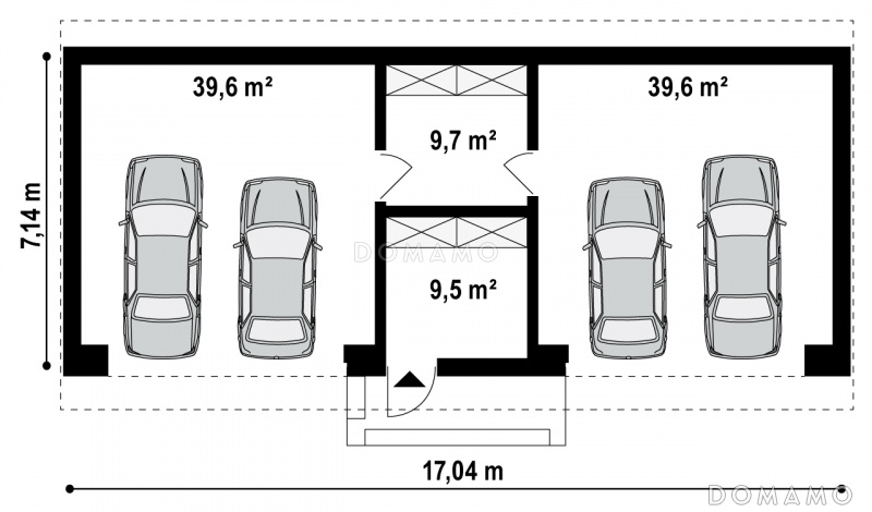 Гараж D4220 Проект большого гаража из газобетона для четырёх автомобилей с подсобными помещениями