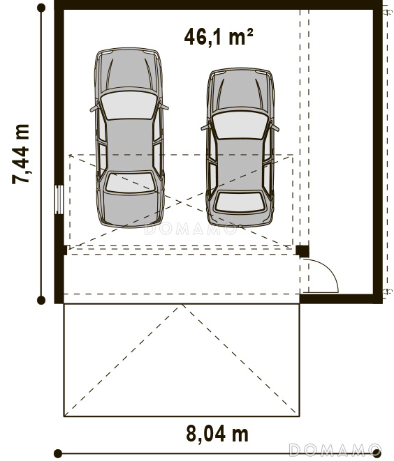 Гараж D4353 Проект гаража из газобетона для двух авто с дополнительным помещением