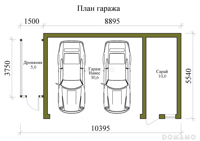 Гараж D4635 Проект гаража-навеса на два машиноместа