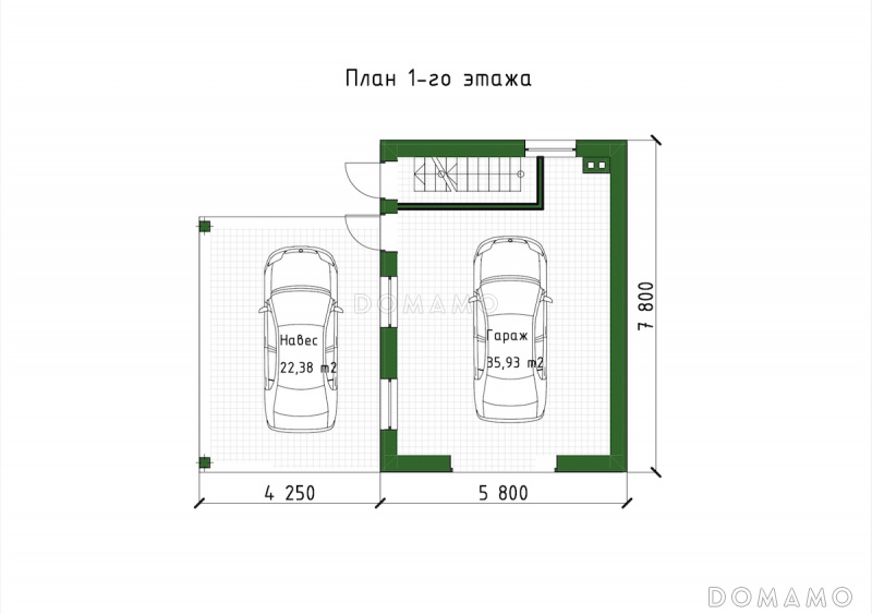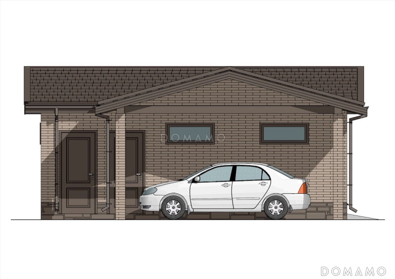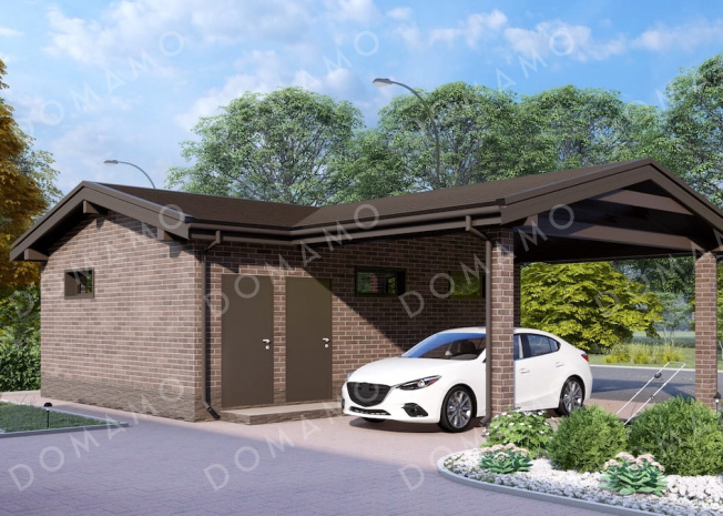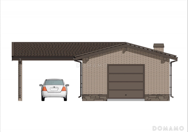 Гараж D6056 Проект утепленного гаража из газобетона с навесом и погребом