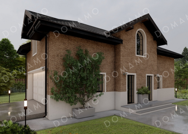 Проект гаража из газобетона с мансардным этажом и облицовкой из кирпича