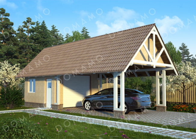 Гараж D710 Проект навеса и хозблока с подъёмными воротами