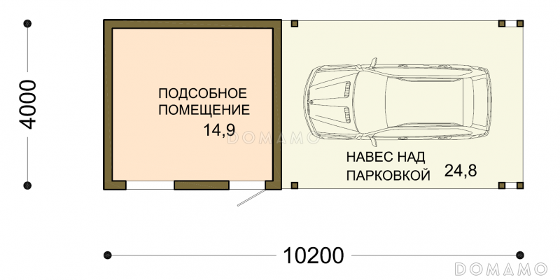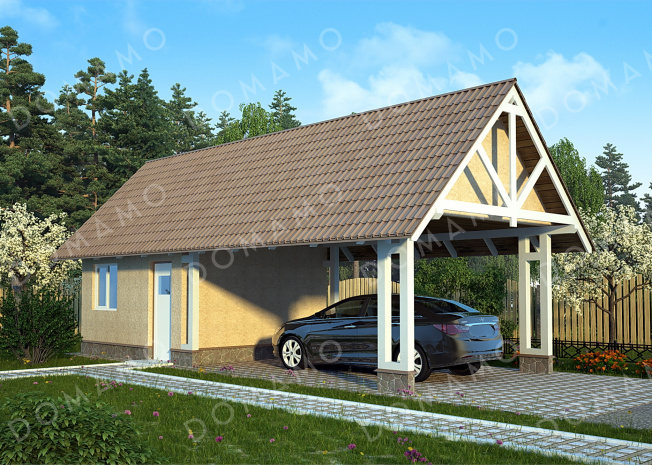 Проект навеса для одной машины с хозблоком
