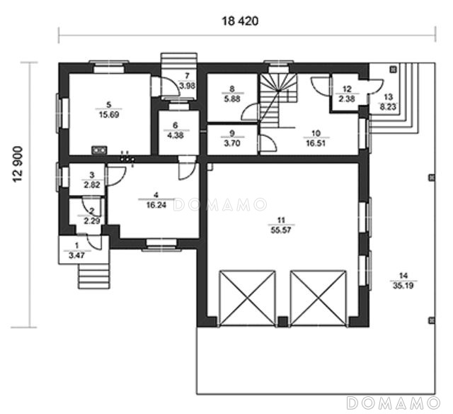 Гараж D933 Проект гаража для двух автомобилей с комнатой для охраны на первом этаже