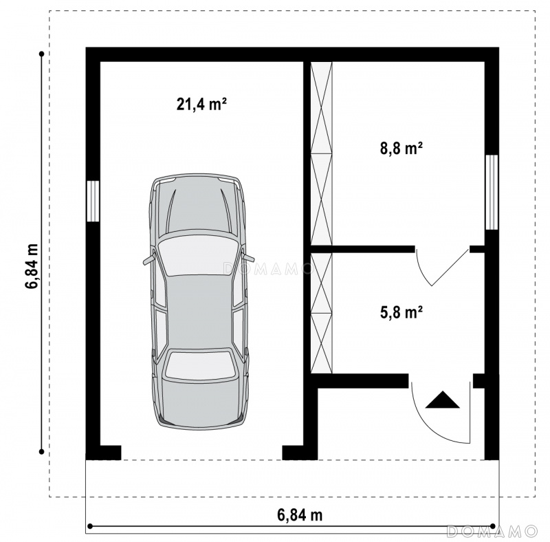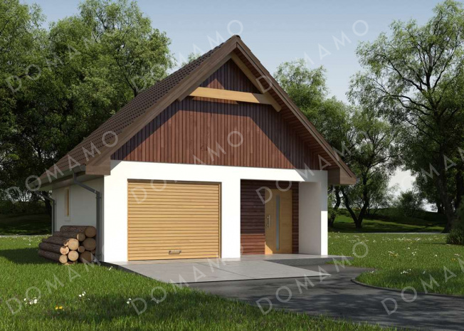 Гараж D964 Проект одноместного гаража из газобетона с подсобными помещениями